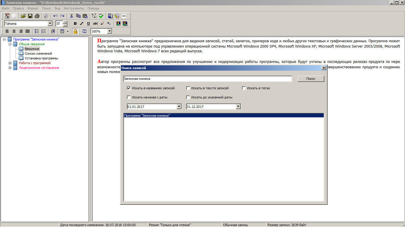 Загрузить программу "Записная книжка" (Notebook) в ZIP-архиве